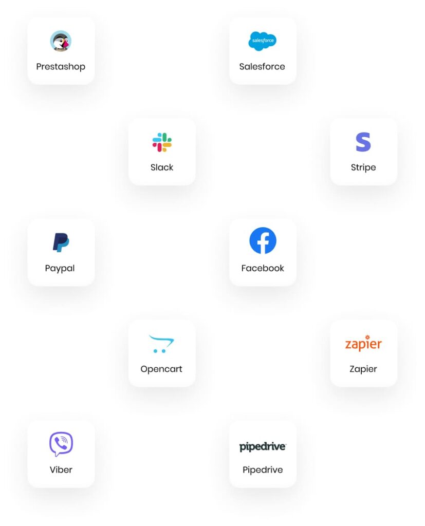 Nodrošiniet ērtu atbalstu un apstrādājiet pieprasījumus, izmantojot Facebook, Twitter, Instagram, Viber un WhatsApp.