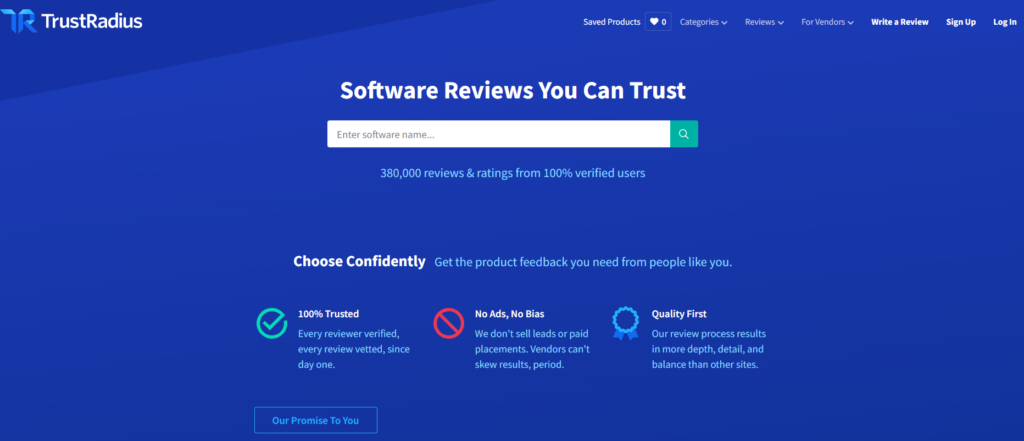 Trustradius ir atsauksmju platforma, kas palīdz pircējiem pieņemt informētākus lēmumus. Apskatiet visu detalizēto informāciju, ko viņi sniedz uzņēmumu profilos, noklikšķinot šeit.
