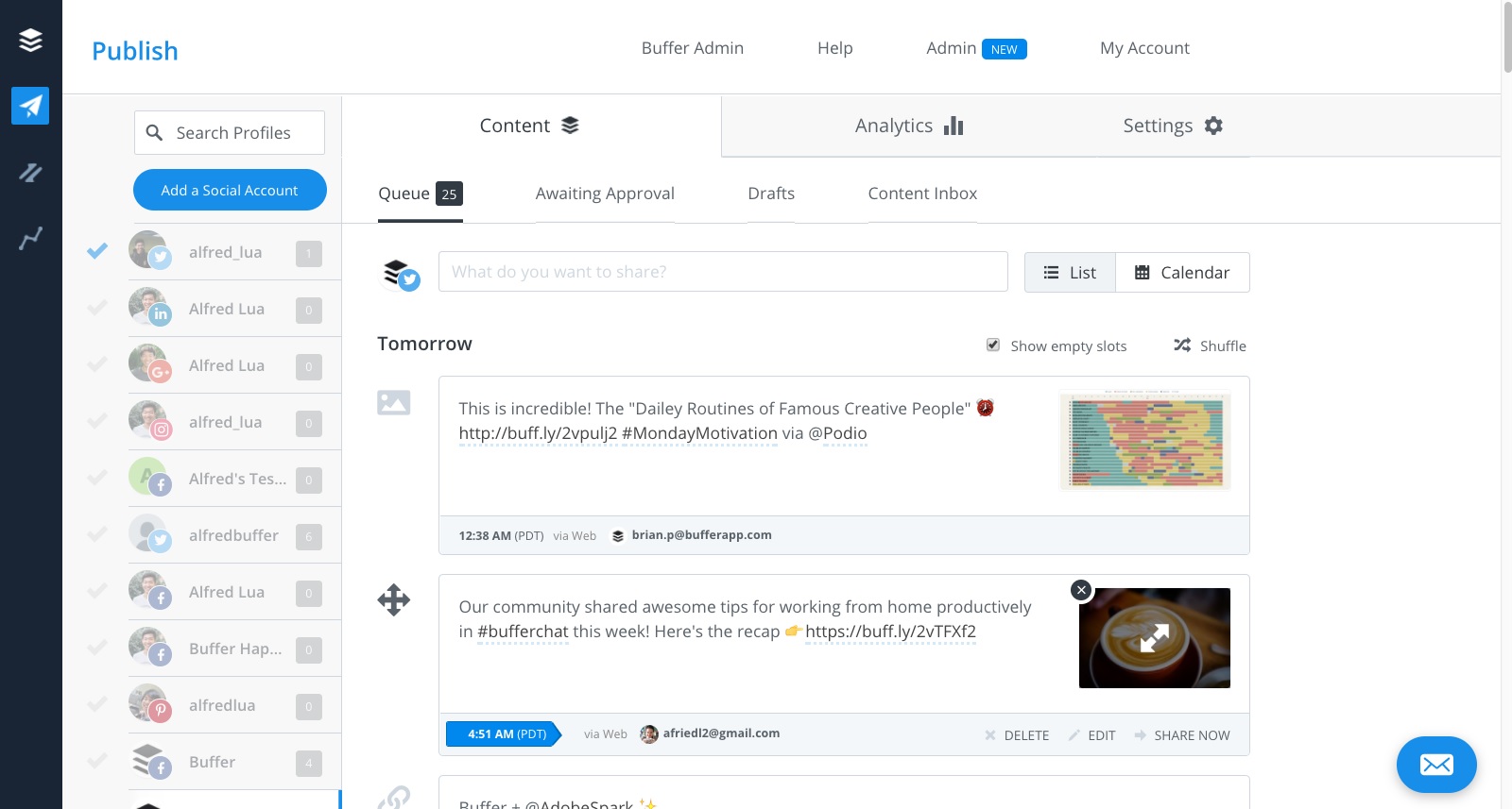 Līdzīgi kā Socialbakers platforma, Buffer tiek slavēts par savu vienkāršību. Lietotājiem patīk, ka viņi var viegli pārskatīt publikāciju izkārtojumus un rediģēt tos tieši lietotnē. No otras puses, šķiet, ir vienprātība, ka pietrūkst integrācijas ar TikTok.