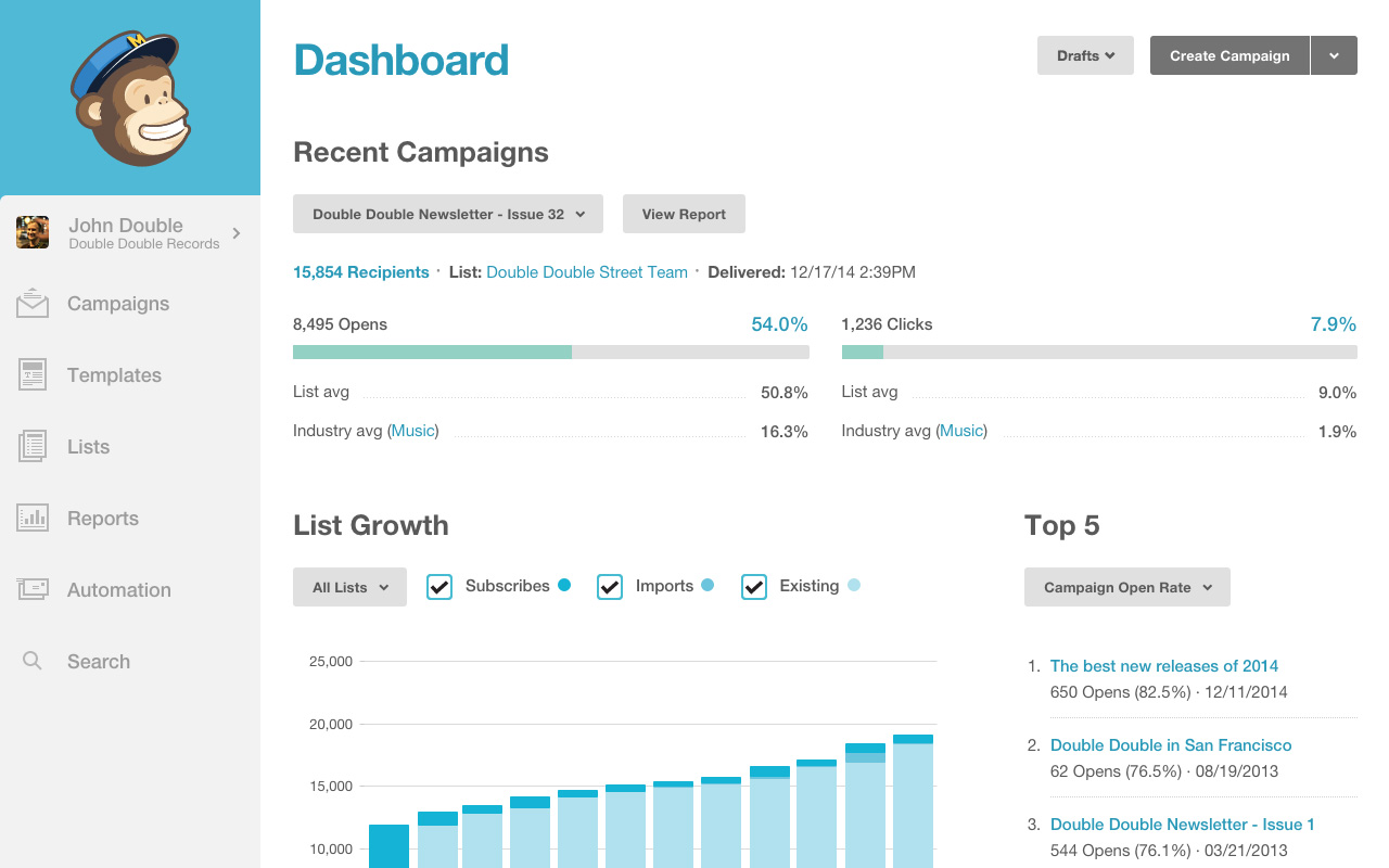 MailChimp lietotāji ir sajūsmā par to, cik lieliskas ir tā funkcijas mazajiem uzņēmumiem un cik vienkārša ir tā lietošana. Piemēram, tā vilkšanas un nomešanas e-pasta konstruktors ļauj viegli formatēt skaistus e-pastus, un tā plašais integrāciju saraksts ļauj ērti sinhronizēt datus ar ārējiem CRM rīkiem un tamlīdzīgiem līdzekļiem.