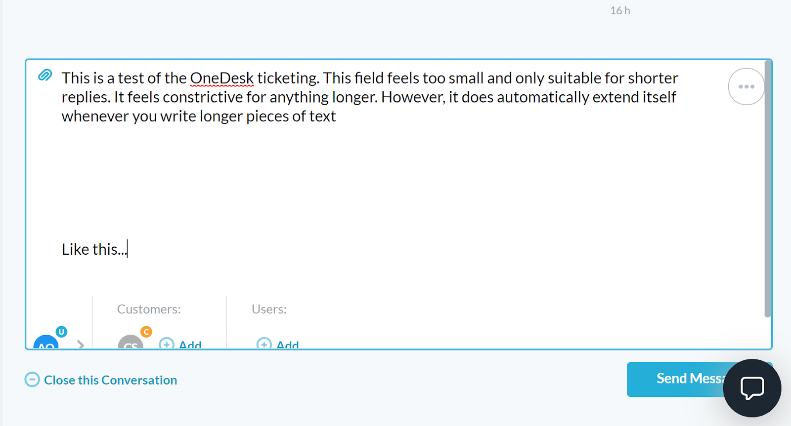 Lai gan viss darbojas kā paredzēts un bez kādām grūtībām, OneDesk noteikti ir jāuzlabo sava lietotāja saskarne. Tomēr tam nav izšķirošas nozīmes, jo pieteikumu apstrādes sistēma darbojas gluži labi, un funkcijas ir pietiekami labas, lai jebkurš aģents varētu labi veikt šo darbu. Var paiet kāds laiciņš, kamēr pie tā pierod, bet pacietība tiek atalgota. Vēl viens iemesls apsvērt OneDesk ir tā cena.