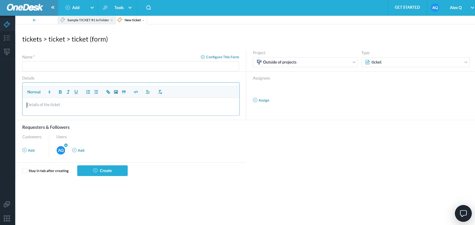 Darba uzsākšana ar OneDesk pieteikumu apstrādi