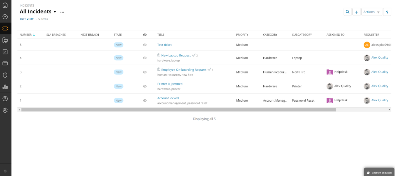 Tagad ir pienācis laiks aplūkot SolarWinds incidentu pārvaldības sistēmas darbību. Es nosūtīju sev pāris testa e-pasta ziņas, lai imitētu pieredzi, kas tiek gūta, čatojot ar darbinieku vai klientu, kurš lūdz klientu atbalstu. Pagāja nedaudz ilgāks laiks, līdz pieteikums parādījās SolarWinds incidentu vadības sistēmā.