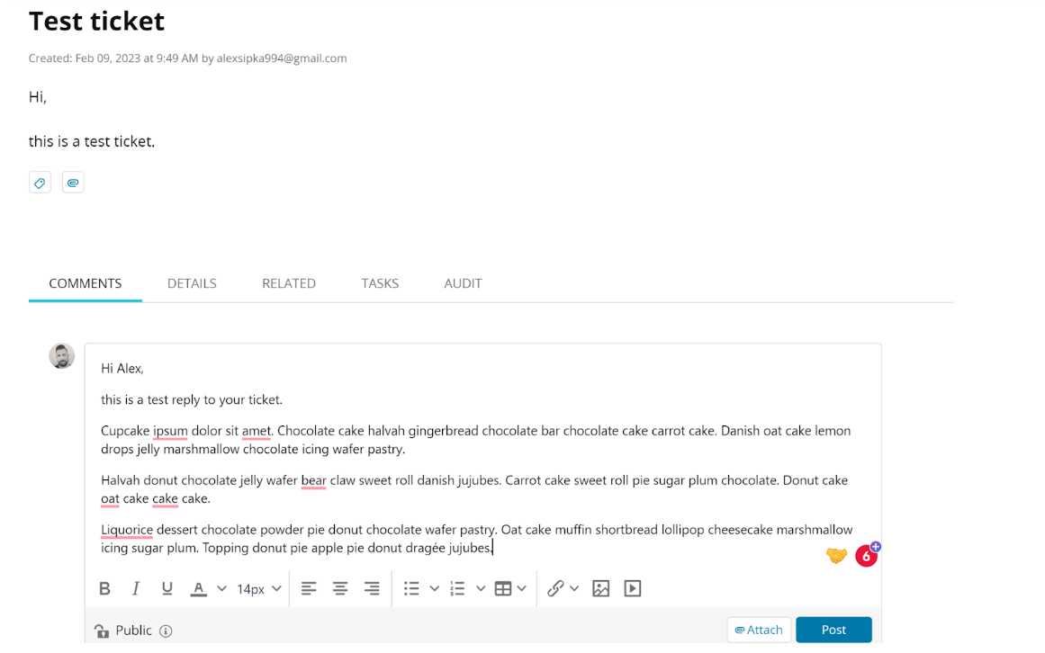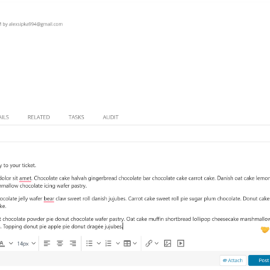 Lai gan atbildes lauks var šķist diezgan kompakts, tas attiecīgi izstiepjas, tiklīdz teksts sasniedz atbilstošo garumu. Tas ir labs risinājums ekrāna vietas ietaupīšanai. Atbildes laukā varat piekļūt visiem teksta rediģēšanas rīkiem. Papildus varat atrast arī citas pieteikuma iespējas – pieteikuma detalizētu informāciju, saistītās iekārtas, uzdevumus un audita žurnālu. Visam tam ir diezgan labas pielietošanas iespējas dažādos gadījumos.