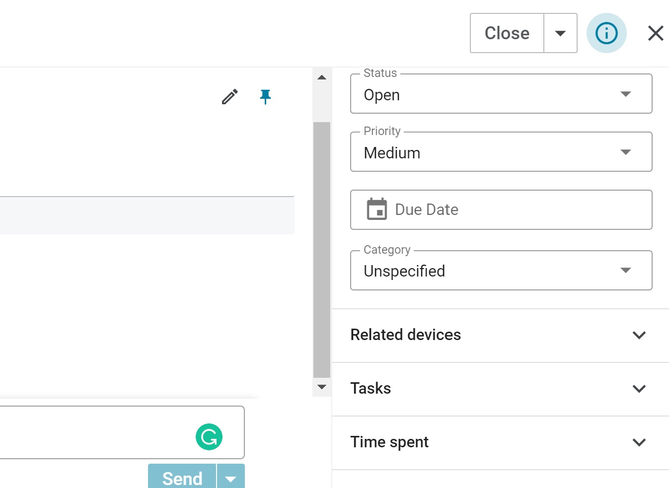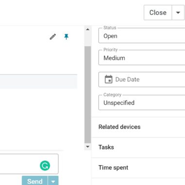 Pēdējā funkcija, ko vēlos pieminēt, ir panelis labajā pusē. Šeit lietotāji var piekļūt pamatinformācijai par klientiem, piešķīrumiem, pieteikuma statusu, prioritāti, termiņiem un pieteikum kategoriju. Šajā panelī ir iespējams arī sekot līdzi saistītajām ierīcēm, uzdevumiem, pavadītajam laikam un lietotājiem. Tas ir gandrīz viss, ko varat iegūt no Spiceworks pieteikumu apstrādes sistēmas funkcijām. Lai arī tas nav visbagātākais funkciju komplekts, tas noteikti spēj nodrošināt visu nepieciešamo aģentiem, lai tie varētu paveikt savu darbu organizēti, pat ja tas ir vien minimālais funkciju komplekts.