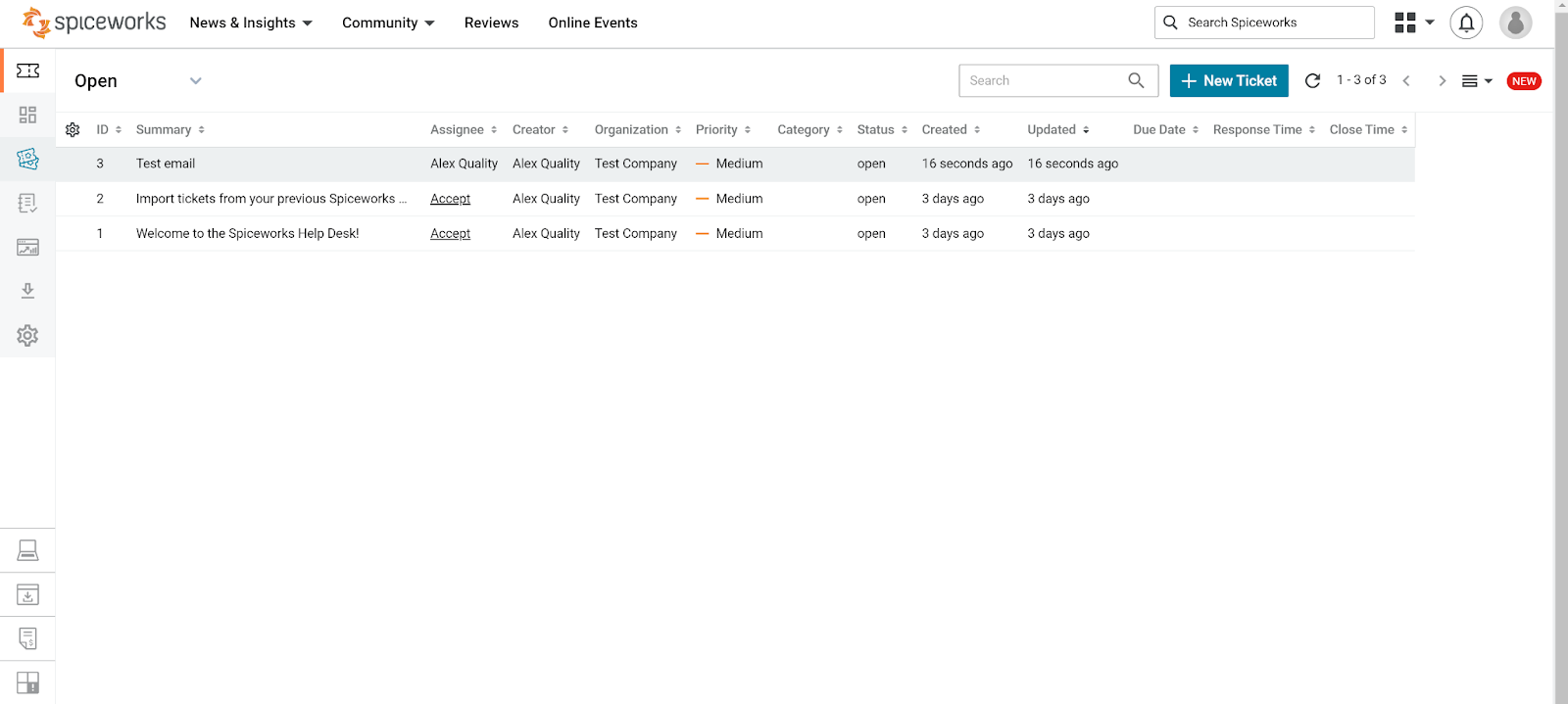 Spiceworks automātiski izveido jums speciālu e-pasta adresi. Tas ļauj izlaist virni soļu un ļoti vienkāršo darba uzsākšanu visos aspektos. Tiklīdz jūs aizpildāt iepriekš minētos soļus, jūs nekavējoties tiksiet novirzīts uz pieteikumu apstrādes sistēmu. Saskarnes dizains ir tīrs un ārkārtīgi funkcionāls, ar ļoti vienkāršu navigāciju un uz ekrāna pieejamiem visiem rīkiem, uzreiz, tiklīdz atverat lietotni.