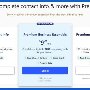 Otrā iespēja piedāvā tādas funkcijas kā pilnīga kontaktinformācija un daži rīki laika ietaupīšanai. Varat arī saglabāt un eksportēt kontaktpersonas, meklēt īpašumu datus un izmantot ātro meklēšanu. Arī ši pakete ir ierobežota ar 20 meklēšanas reizēm mēnesī, un tā var izmaksāt līdz pat $9,99/mēnesī. Varat arī izvēlēties, vai maksāt $9,99/mēnesī vai uzreiz par 12 mēnešiem $59,88 un tas ir vienāds ar $4,99/mēnesi.