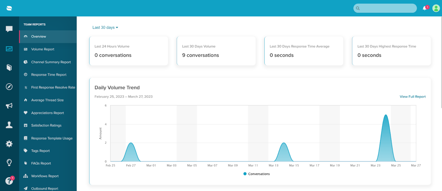 Pro pakete izmaksā $49 mēnesī vienam komandas loceklim, maksājot ikmēnesi vai $46,55 mēnesī vienam komandas loceklim, maksājot reizi gadā. Jūs iegūstat visas funkcijas no paketes Basic, kā arī vairāku zīmolu kontus, vietnes apmeklētāju tiešsaistes skatu, paplašinātas atskaites, SMS un balss kanālus, pielāgotu hostinga domēnu, pielāgojamu e-pasta izskatu, statusa lapu un citas iespējas.