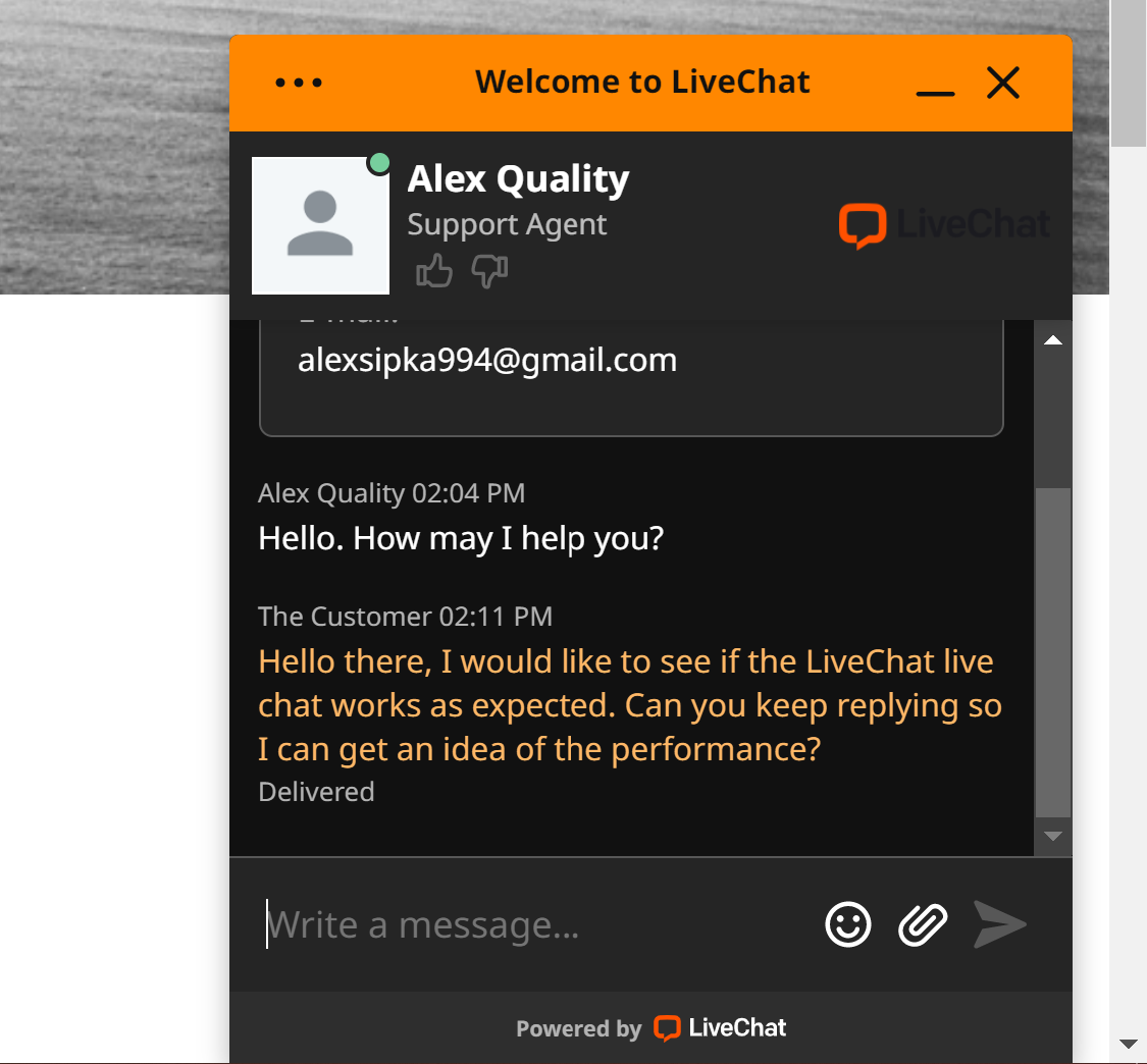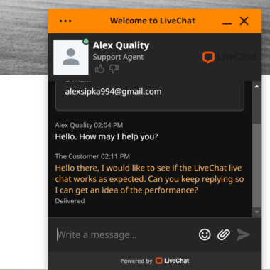 Kopumā LiveChat tiešsaistes čata logrīka sniegums ir lielisks, un man nav absolūti nekādu pretenziju. Man nebija nekādu problēmu ar ātrumu, nebija arī nekādu kļūdu vai problēmu. LiveChat logrīks ir spēcīgs konkurents, ja runa ir par veiktspēju.