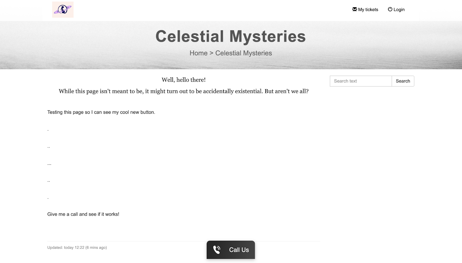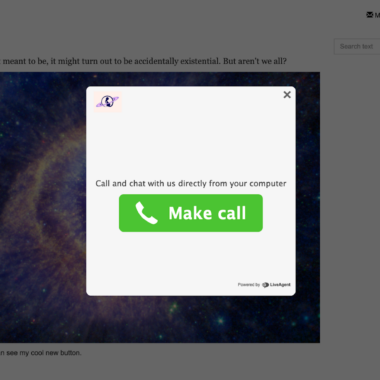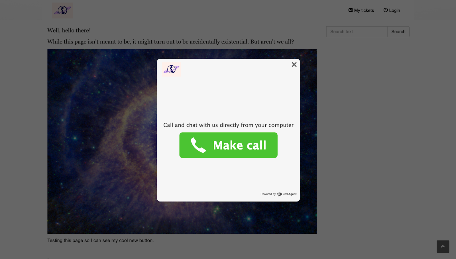 Noklikšķinot uz pogas Piezvaniet Mums manā lapā, tika parādīts uznirstošais logs ar pielāgojamu tekstu, tādējādi jūs kontrolējat, kā klienti uztver jūsu pakalpojumu pat pirms zvana sākšanas.