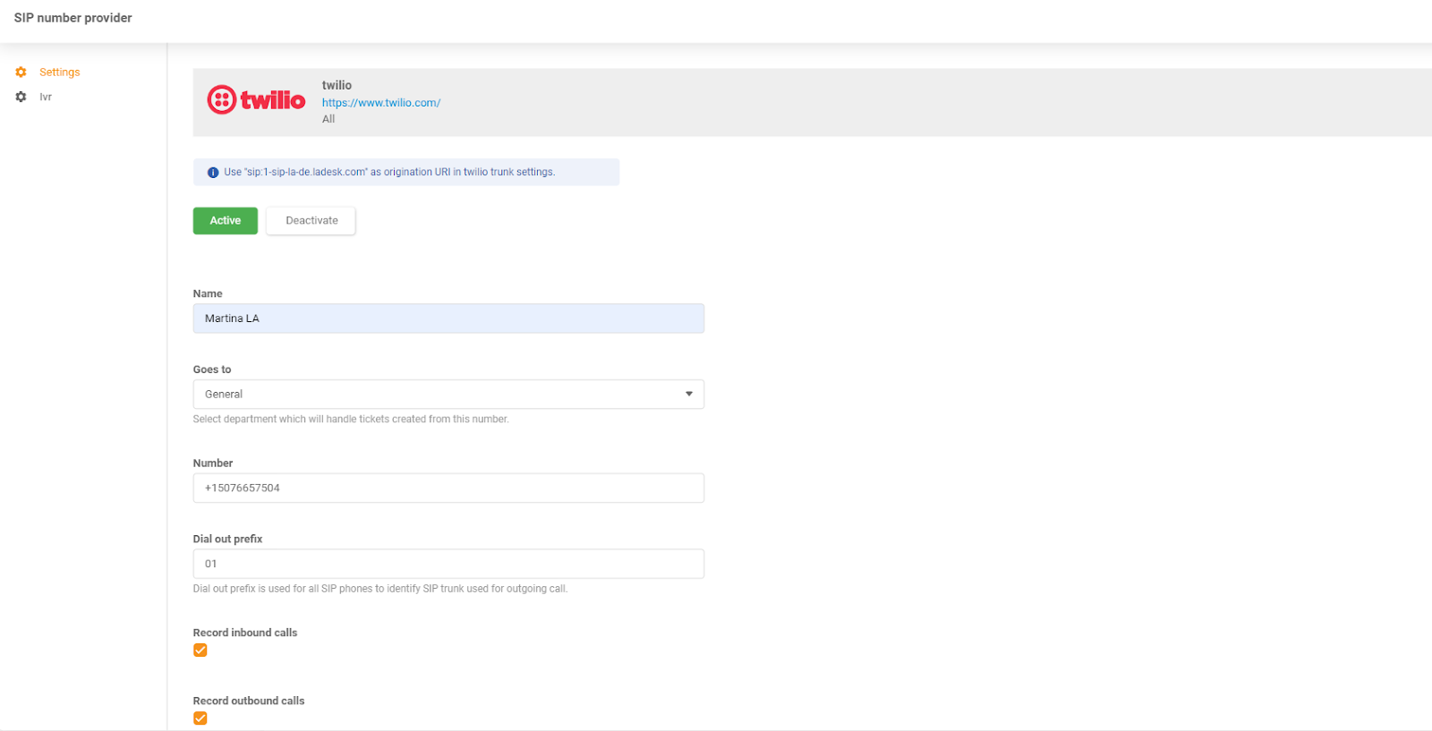 Man bija savs Twilio konts, tāpēc es to integrēju. Ja jums nav iestatīts VoIP pakalpojumu sniedzējs, LiveAgent zināšanu bāze sniedz noderīgu rakstu, kurā aprakstīta informācija par šo procesu.