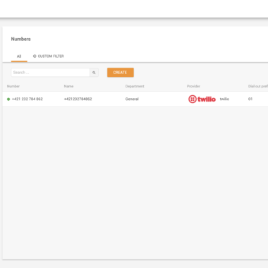 Brīdi apskatījies apkārt, biju gatavs pārbaudīt LiveAgent zvana ierakstīšanas iespējas. Protams, nevar ierakstīt zvanus, ja nav iestatīts VoIP numurs un SIP. Bet nav jāuztraucas, LiveAgent nodrošina šim nolūkam plašu integrāciju klāstu, tāpēc neatkarīgi no tā, kas ir jūsu VoIP pakalpojuma sniedzējs, pastāv labas iespējas, ka LiveAgent to atbalsta. Lai noskaidrotu, kuru no tiem var integrēt, atveriet kreisās puses aģenta paneli, noklikšķiniet uz Iestatījumi > Zvani > Numuri un pēc tam nospiediet oranžo pogu Izveidot.